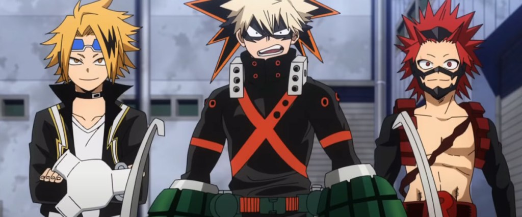Once this scene is done, we’re reunited with the rest of Class 1-A. Some of whom are sporting some cool new costumes! Ashido’s got some fur and new patterned clothes, Yaoyorozu has a Doctor Strange-like cape now, and Bakugo is sporting a sleek new black look! It’s nice to see some new designs to keep things fresh and interesting.