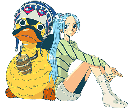 Upon entering the Grand Line, the Straw Hats encounter Laboon, a massive whale, and Crocus, an old man who cares for him. During this encounter, they meet a pair of strange individuals, Mr. 9 and Ms. Wednesday. After learning how to navigate the Grand Line from Crocus and making a promise to Laboon, the Straw Hats take the two back to their home island of Whiskey Peak, where they’re greeted with an oddly warm welcome. But not all is as it seems; Whiskey Peak is actually a pirate death trap lead by the mysterious Baroque Works, lead by the mysterious Mr. 0. And among this organization is a spy: the princess of the kingdom of Alabasta, Vivi!