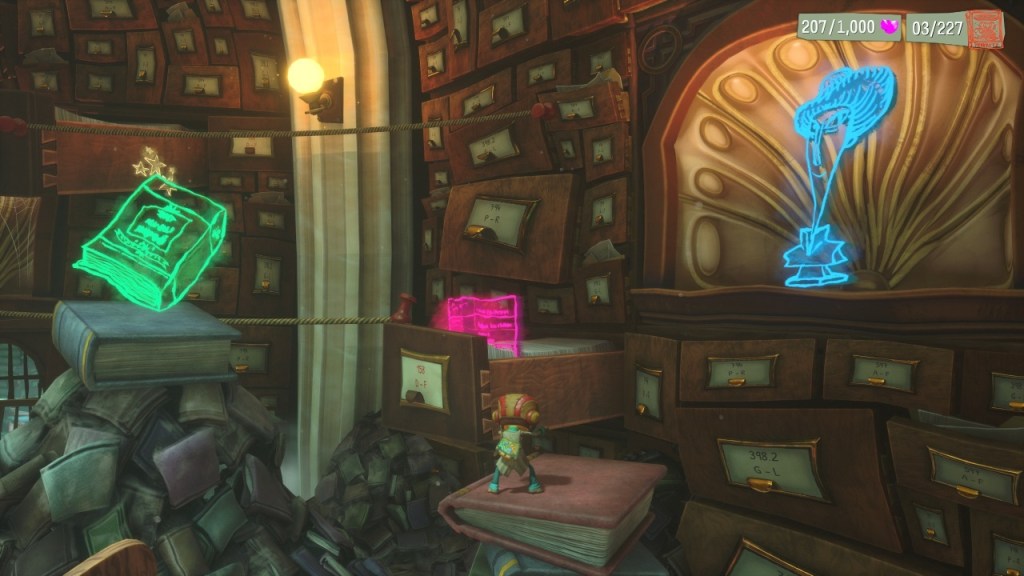 Gathering these up is a ton of fun! However, if you’re going for that 100% completion, feel free to pull up a guide. Because scouring each level for a single missing figment can get really old really quickly. That was an issue in the first game as well, and I’m sad they didn’t introduce anything to alleviate the issue. Maybe give Raz some kind of radar to help the player locate collectibles they missed?