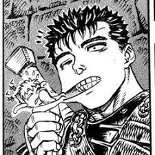 In the first arc of the series, Guts puts on a show of cold cruelty. Yet beneath his hard façade, there are signs that he truly cares for people. Every now and then, he shows signs of affection and concern and kindness to those around him. But he tries to suppress those feelings, to make himself into the hardened cold-hearted warrior he wants everyone to believe he is.