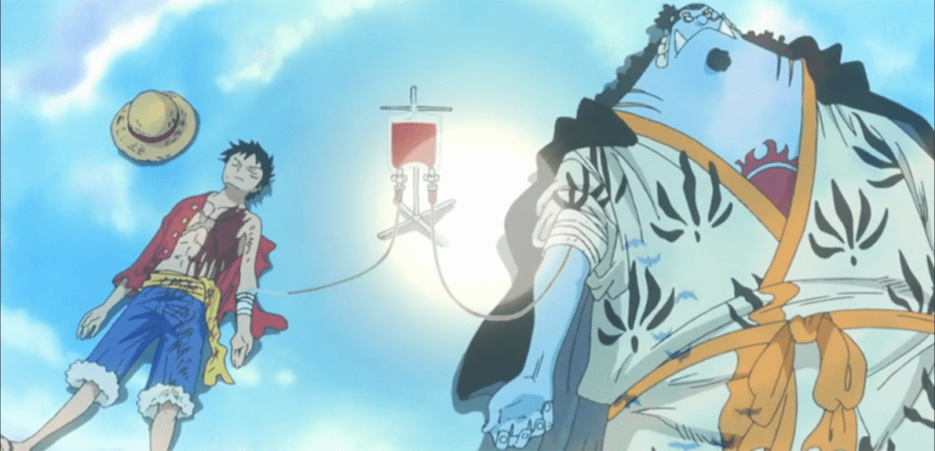 And of course, there’s the final scene with Luffy and Jimbei. A beautiful moment of two characters putting aside all of their past pains or prejudices to help each other out. Because at the end of the day, no matter how different we look, we all have the same blood in our veins.