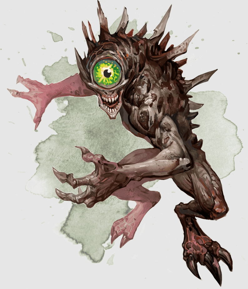 The gaze of a nothic is just as horrific as it is intelligent and unnerving. When spurned to violence, its victims will rot from the cursed eye of the beast.