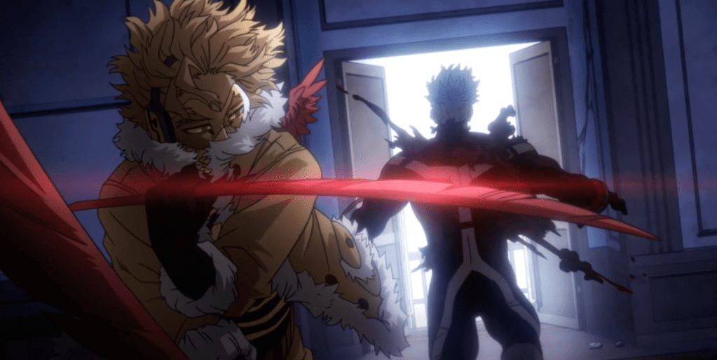 I do love how menacing the artists made Hawks look. The dude straight-up looks like a specter of death in certain shots! It’s a great way of putting us in Twice’s perspective, revealing just how terrifying the #2 hero can be from the villain’s point of view.