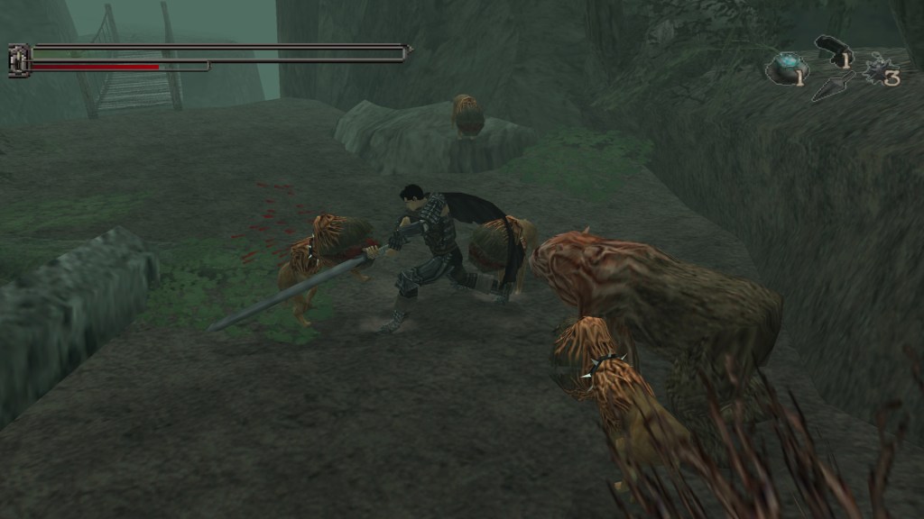 ‘Sword of the Berserk’ is a character action game in the real early stages of the genre. As Guts, your goal is simple: make your way to the end of the level. This could mean literally walking to the end, killing all the enemies, or defeating the boss. In order to do this, you’ll need to make good use of the Dragonslayer and Guts’ other weapons.