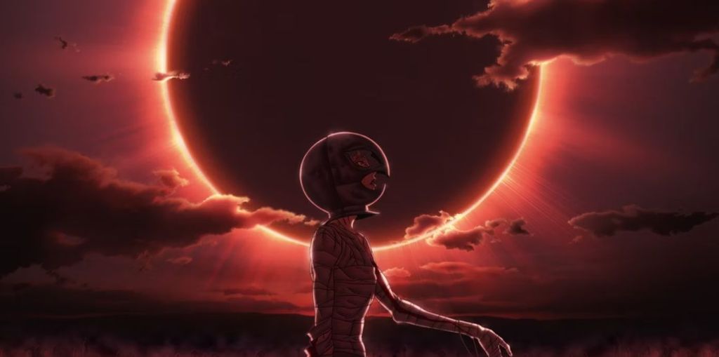 Everything gets real creepy. Mysterious naked figures appear in the lake, silhouettes appearing seemingly out of thin air with malicious smiles on their faces, looking more like monsters than people. The long foreshadowed eclipse darkens the sky. It’s a striking, dread-inducing image.
