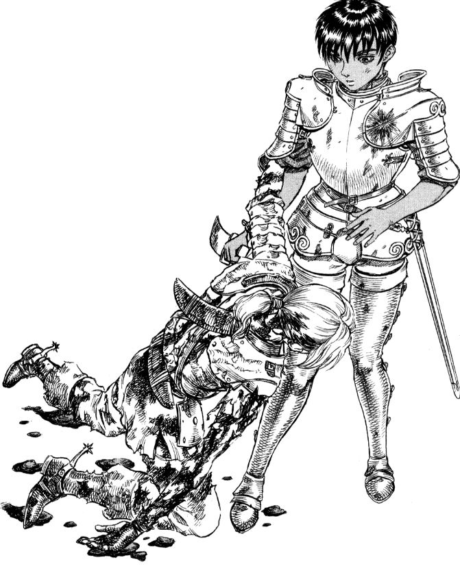 What really kicks me in the teeth is that each death is so perfectly fitting for the characters. Pippin goes quietly, stoically facing down impossible odds. Corkus denies everything and runs away, convincing himself its all a bad dream and being betrayed by his lust. Gaston, Guts’ ever loyal right-hand man, dies realizing that he’s just a side character, passing within his captain’s arms.