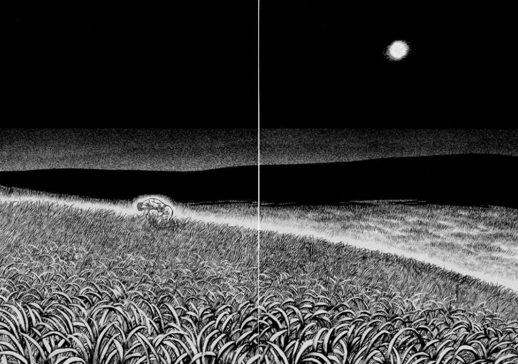 On a far more positive note: ‘The Sprint’ is one of my all-time favorite chapters of Berserk. Guts is so overwhelmed by everything that happens that he just breaks and runs away. As he’s dashing through the woods, he’s haunted by memories of the friends he lost. He runs and runs until he can’t run anymore, collapsing into a field of grass. As the rain falls on him, he’s haunted by the memory of Griffith’s new demonic form. He ran as far and as fast as he could, and he still can’t get away.