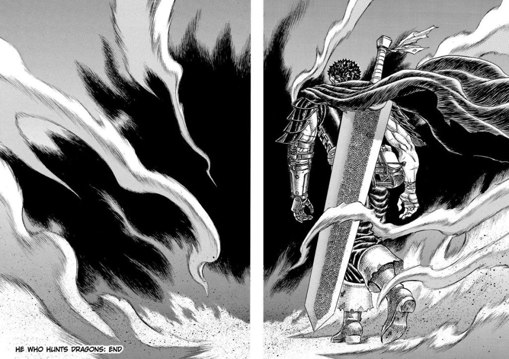 One thing I adore about these chapters is how cool Miura managed to make the Dragonslayer. Back at the beginning of the story, it was just a comically large sword. But now, it has a story to it. We learn that Godo basically made it as a joke, believing that no one would be able to wield it. Yet he firmly believes that if anyone could wield it, it would be the strongest weapon in the world.