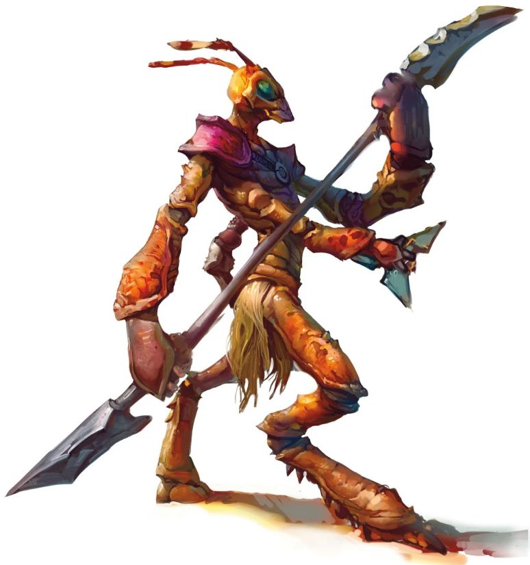 That sound a bit too boring for you? Not to worry. There are a few different varieties of thri-kreen to use. You’ve got one with different weapons, as well as one with telepathy and a small spell list. Here’s what that looks like: