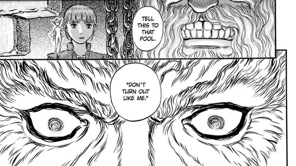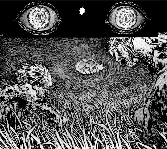 Especially when the eyes show up. And fuck me, they’re creepy! Luckily, Casca has a protector. Albeit an equally disturbing one.