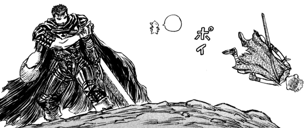 So instead of showing you that, here’s Guts yeeting a child off of a cliff.
