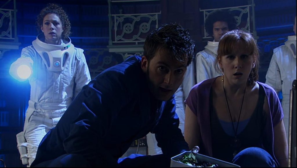 The Tenth Doctor and Donna land in the Library, an entire planet turned into… a library. Only they’re the only ones there; the whole planet is deserted. Their only clue is a cryptic warning: “Count the shadows.” Not long after, an expedition arrives, helmed by the mysterious River Song, a figure from the Doctor’s future. Now they’re all trapped in a dark death maze, where any shadow can be their death. Is it all just a little girl’s dream become a nightmare? Or is there more to this Library than meets the eye?