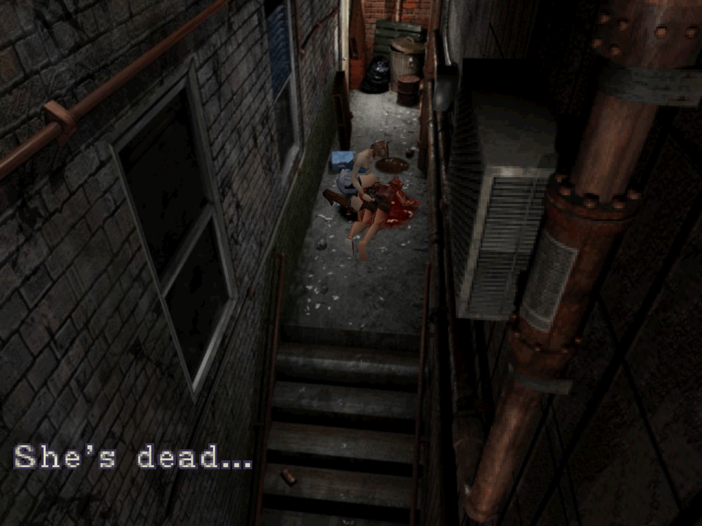 One of my favorite moments came early in RE3. Backtracking to find a key item, I came across a woman screaming for help whilst running from a small horde of zombies. Slipping past them, I gave chase, spurred on by her screams of terror. Only to find that same woman dead on the ground, another zombie standing over her corpse. It is a haunting moment, even today.